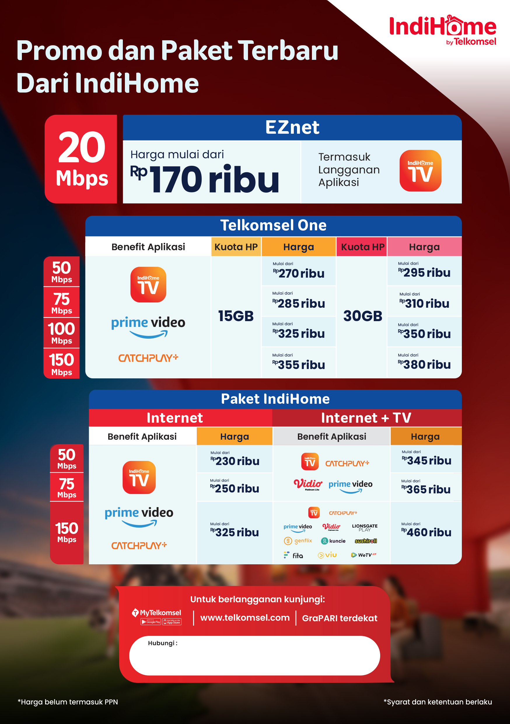 Gabungan konektivitas: akses internet rumah via IndiHome + kuota seluler dari Telkomsel dalam satu layanan.